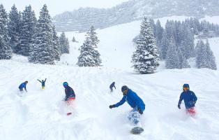 - sicheres und sportliches Fahren in unterschiedlichen Geländeformen und Schneearten