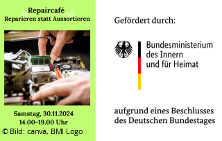 Der Adventsmarkt und das Repaircafé finden im Rahmen des Projekts „Klimafreundliches Zusammenleben in Berlin“ statt. Das Projekt wird gefördert durch das Bundesministerium des Innern und für Heimat.