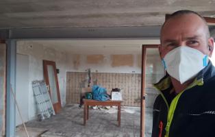 Schon im Vorfeld der Bauarbeiten hatten sich Mitglieder und Freunde bereit erklärt, einige Arbeiten selbst zu übernehmen. Und Ende Oktober 2023 begannen dann die konkreten Baumaßnahmen. Zuerst wurde die alte Küche ausgebaut, die Kacheln und die Holzdecke entfernt, der Bodenbelag rausgerissen und der Bauschutt abtransportiert. Das passierte alles in Eigenleistung.